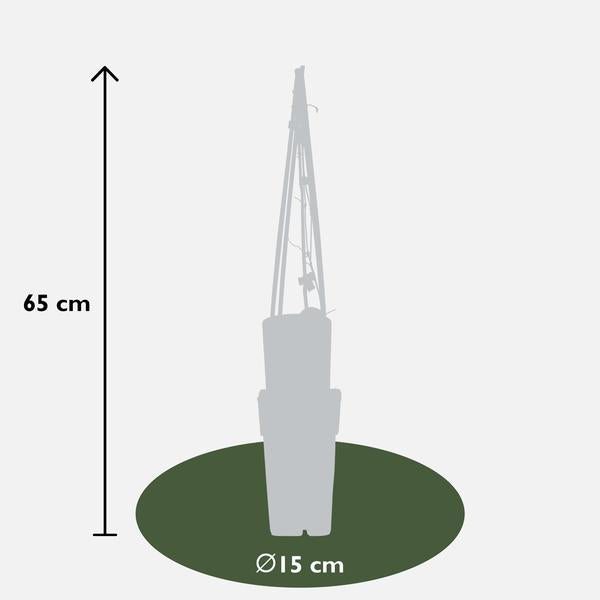 Größe und Wachstum: Aktuelle Höhe ca. 65 cm im Ø 15 cm Topf. Die Pflanze wächst kletternd und erreicht eine Endhöhe von etwa 2,5 m. Sie ist mehrjährig, robust und entwickelt sich zu einem dichten Blütenmeer.