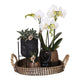 Die Phalaenopsis-Orchidee beeindruckt durch ihre Eleganz, während die Sukkulenten für eine frische Note sorgen. Beide Pflanzen sind pflegeleicht und langlebig.
