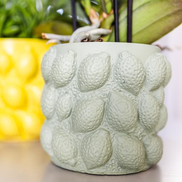 Bringen Sie etwas Farbe in Ihr Interieur mit dieser schönen gelben Orchidee in einem auffälligen Citrus-Dekotopf grün. Mit 2 oder 3 Zweigen ist diese Orchidee ein echter Blickfang in jedem Raum. Der Topf aus Keramik hat eine Topfgröße von 9 und ist mit Zitrusfrüchten verziert. Bringen Sie einen Hauch von Frische in Ihr Zuhause mit dieser schönen Kombination aus Pflanze und Topf.